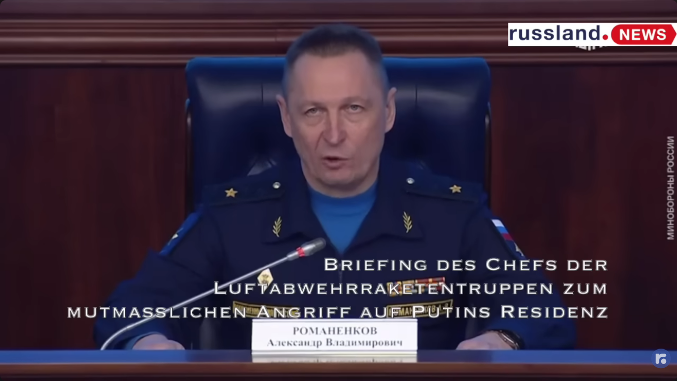 Briefing des Chefs der Luftabwehrraketentruppen zum NATO- Angriff auf die Residenz von Wladimir Putin