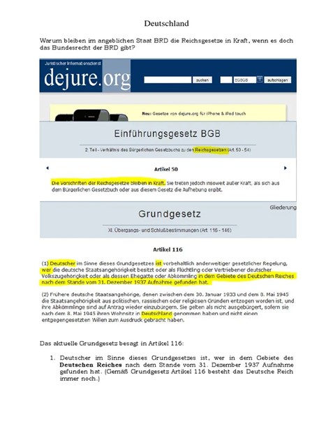 Darüber ist Deutschland heutzutage immer noch im Rechtszustand von 1934, immer noch besetzt und wird der BRD treuhänderisch im Auftrag der alliierten Siegermächte fremdverwaltet.